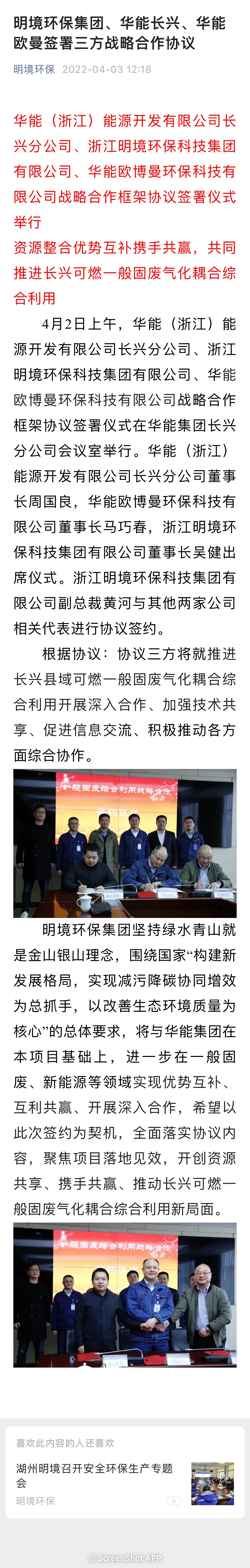 明境環(huán)保集團、華能長興、華能歐博曼簽署三方戰(zhàn)略合作協(xié)議